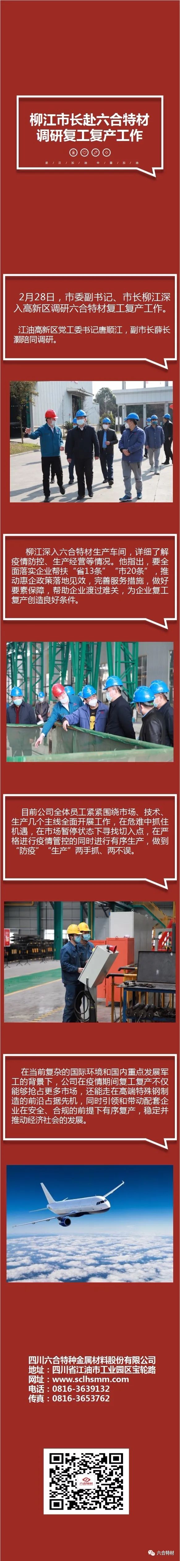 2月28日,市委副书记、市长柳江深入高新区调研best365英国体育在线复工复产工作。江油高新区党工委书记唐顺江,副市长薛长灏陪同调研。