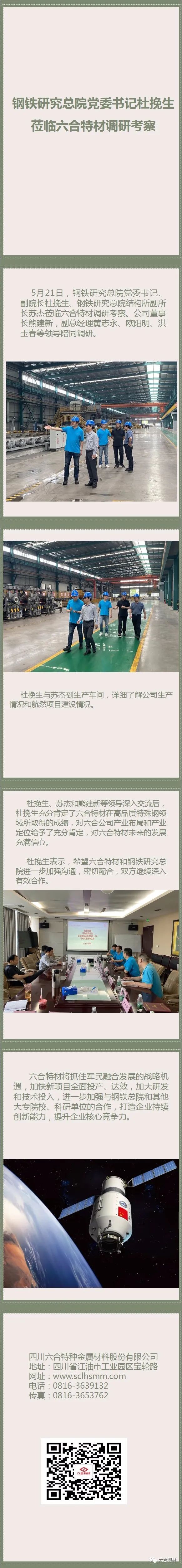 钢铁研究总院党委书记杜挽生莅临best365英国体育在线调研考察