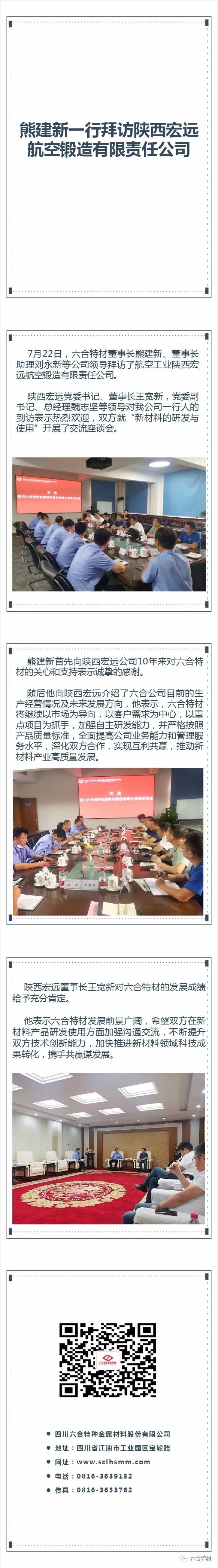 7月22日,best365英国体育在线董事长熊建新、董事长助理刘永新等公司领导拜访了航空工业陕西宏远航空锻造有限责任公司。