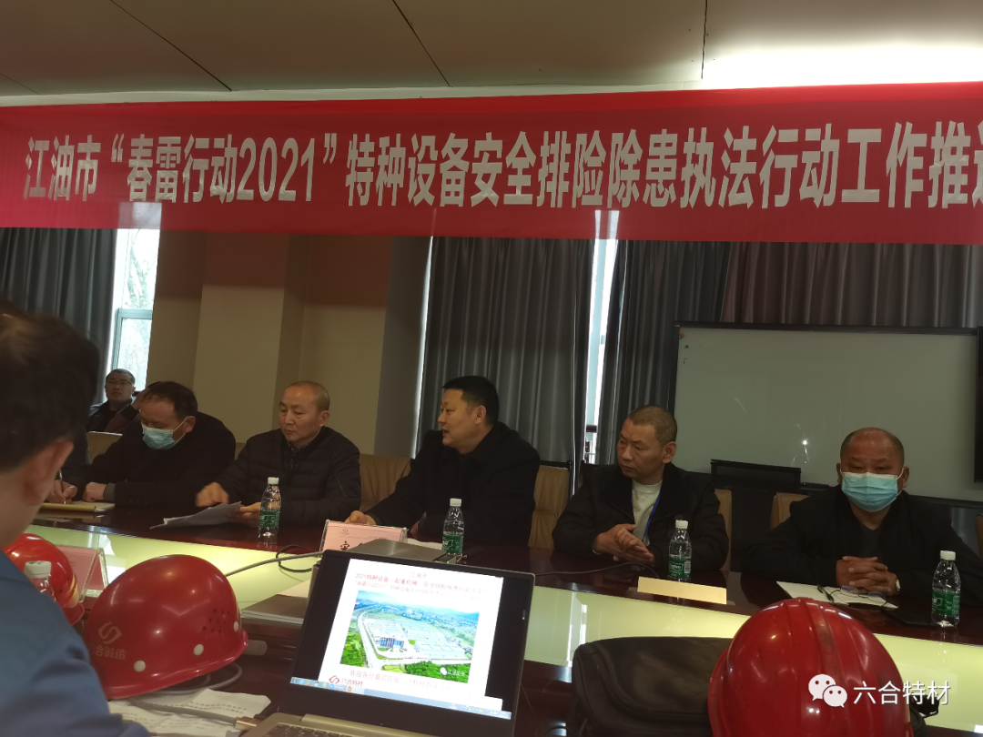 2021年3月20日,为有效提升江油市辖区重点单位、重点行业、重点场所的特种设备使用管理水平,加大特种设备隐患排查和整治力度,确保特种设备使用安全,江油市市场监督管理局在best365英国体育在线公司组织召开了江油市2021特种设备(起重机械)安全排险除患经验交流现场会暨江油市“春雷行动2021”特种设备安全排险除患执法行动工作推进会活动。