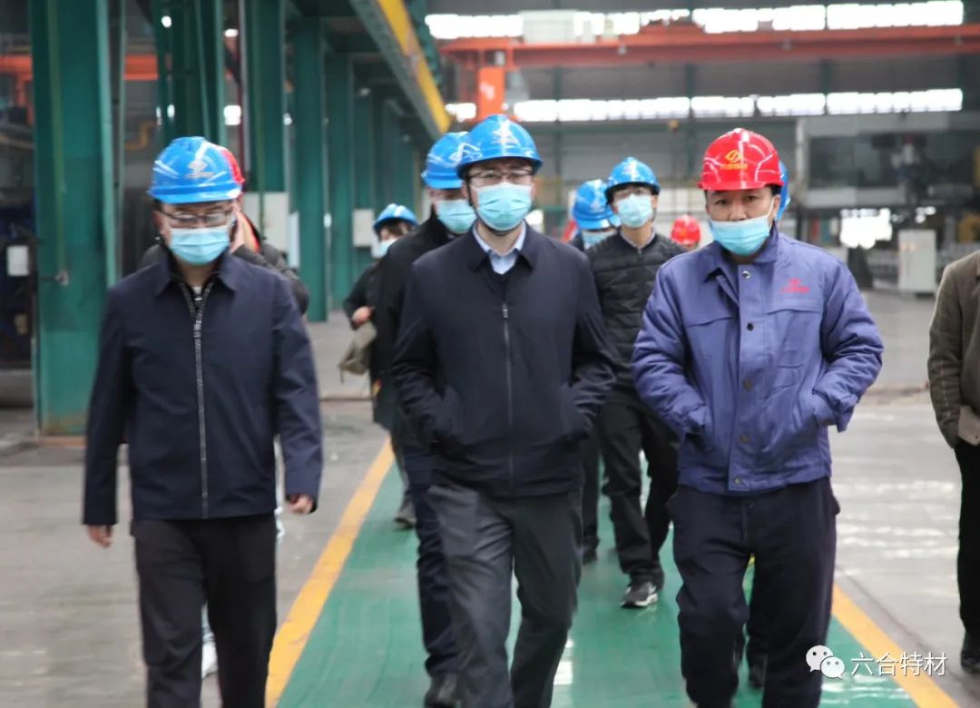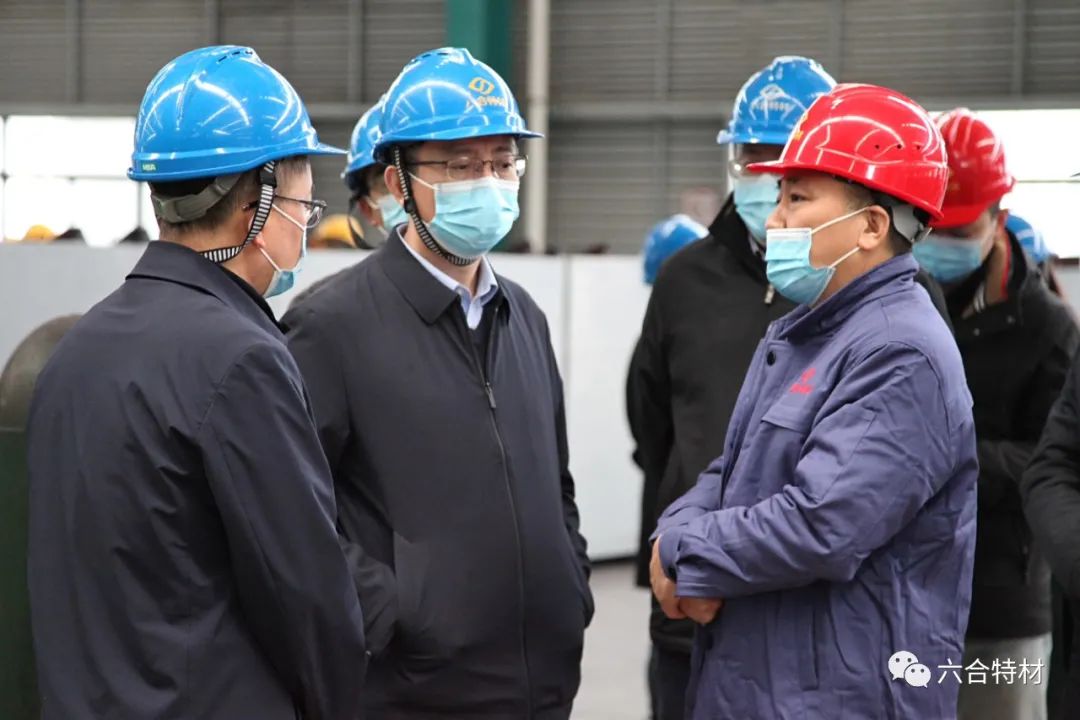 黄朝阳一行先后走进best365英国体育在线快锻车间和连轧车间,与六合董事长熊建新深入交流,详细了解了企业在生产经营、研发能力、节能环保等方面的具体情况,关切地询问并了解六合在发展中遇到的困难和问题。