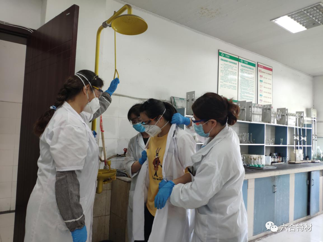 借安全生产月之际,化学检测室组织了一次安全事故应急救援演练。本次演练模拟了员工硫酸在搬运的过程中不慎,瓶体掉落摔碎,身上溅了部分硫酸,皮肤被硫酸灼伤的情景。