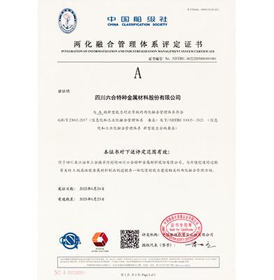 两化融合管理体系评定证书