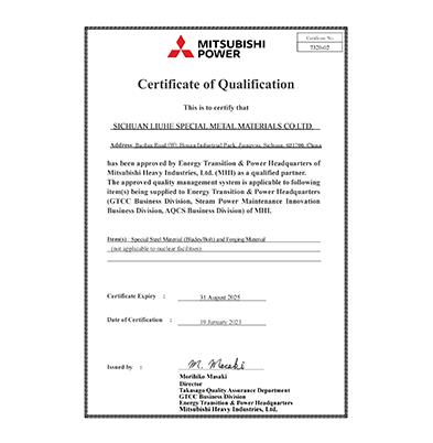 三菱合格供应商证书