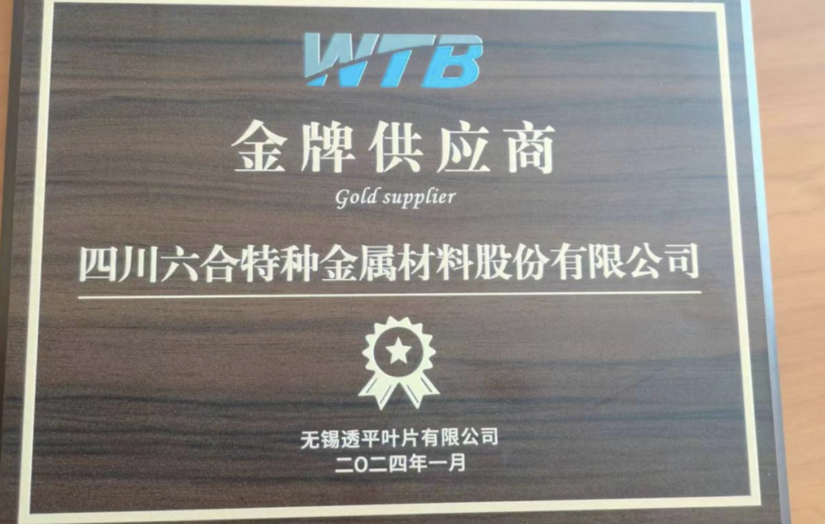 best365英国体育在线荣获无锡透平叶片有限公司“金牌供应商”